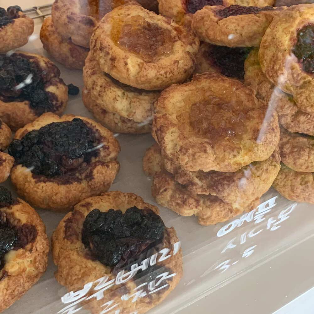 직접 만든 라즈베리잼을 이용해 만든 스콘입니다.라즈베리의 상큼함과 스콘의 고소함이 잘 어울리는 스콘입니다
