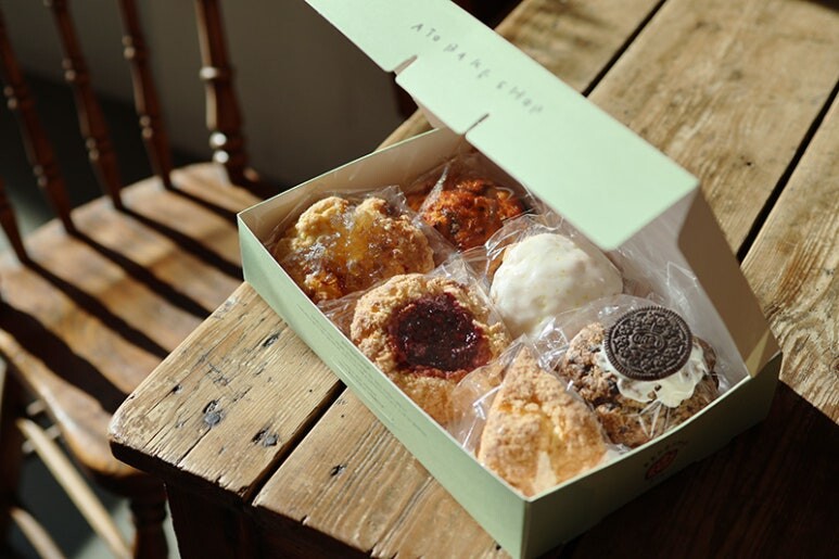 아토베이크샵의 모든 스콘은 발효 고메버터를 사용하여 반죽하고 있습니다. 또한 스콘의 당도는 줄이고 속재료 또한 깊은맛을 내기 위한 공정을 선호하며 스콘마다 개별 반죽 레시피를 통해 차별화를 주어 맛과 식감을 다르게 만들고 있습니다. 어린 아이부터 어른까지 모든 연령층이 즐길 수 있는 아토베이크샵만의 깊은 풍미를 느껴 보세요.